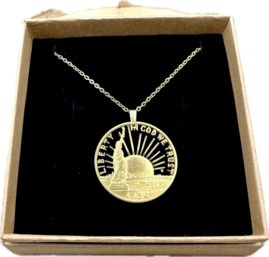24k Plate U.S. Nation of Immigrants Half Dollar Hand Cut Coin Necklace