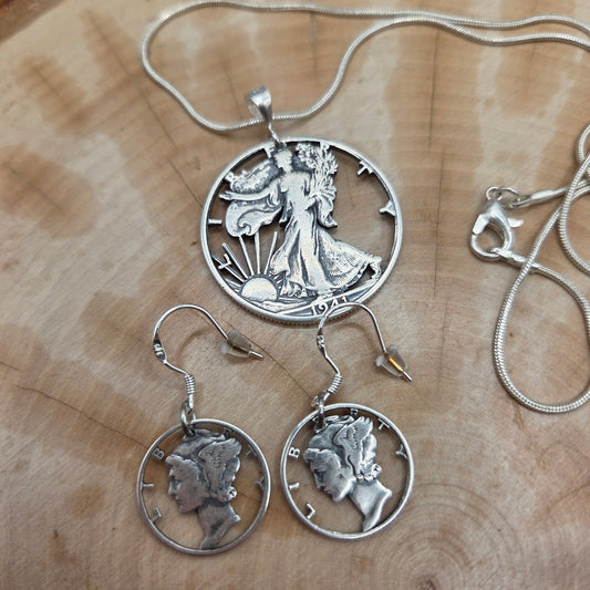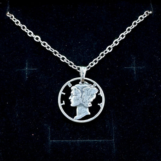 U.S. Mercury Dime Hand Cut Silver Coin Necklace