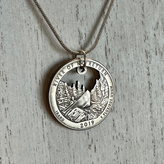 Idaho "River of No Return" Quarter Hand Cut Coin Necklace