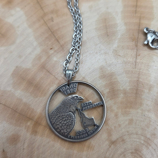 Idaho State Quarter Hand Cut Coin Necklace