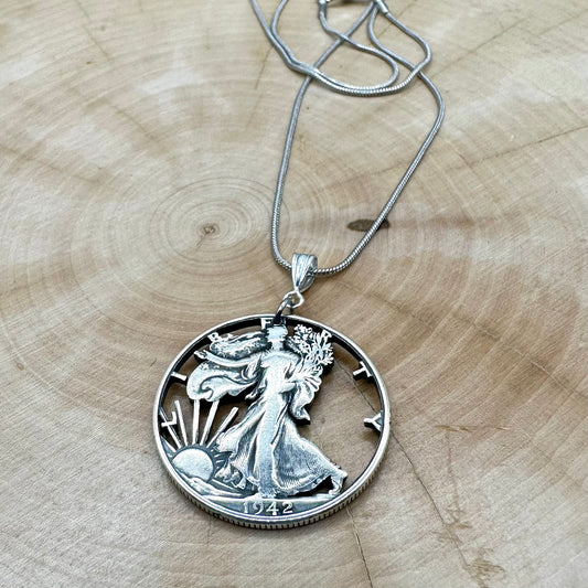 U.S. Walking Liberty Hand Cut Silver Coin Necklace