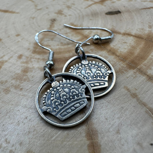 Sweden Crown 10 Ore Hand Cut Silver Coin Earrings