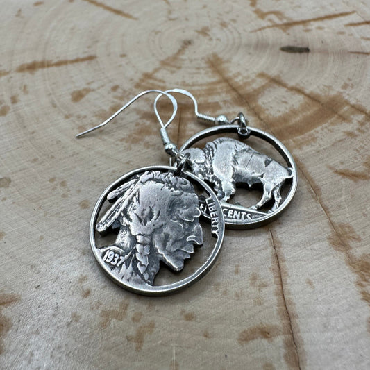U.S. Buffalo Nickel Hand Cut Coin Earrings (Combo)
