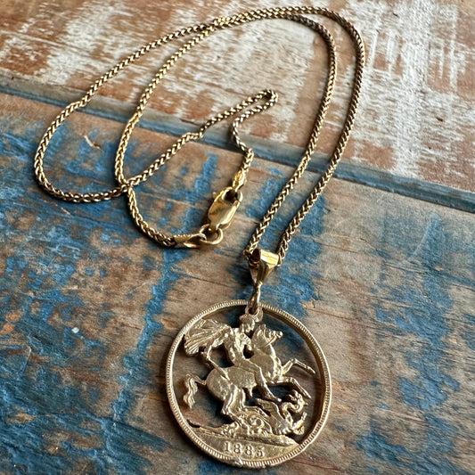 22k Solid Gold UK Gold Sovereign Hand Cut Coin Necklace
