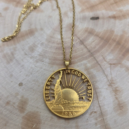 24k Plate U.S. Nation of Immigrants Half Dollar Hand Cut Coin Necklace