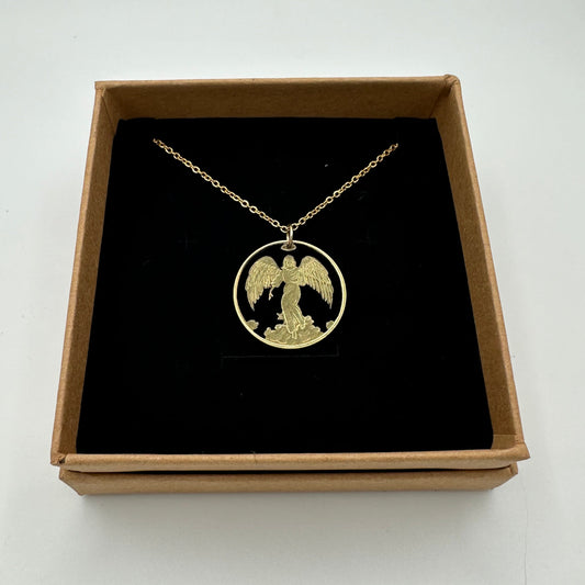 Greek 20 Drachmai Hand Cut Silver Coin Necklace