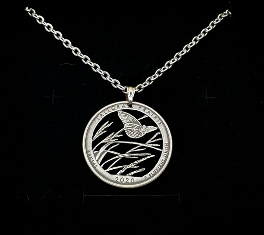 U.S. Butterfly Tallgrass Prairie Quarter Hand Cut Coin Necklace