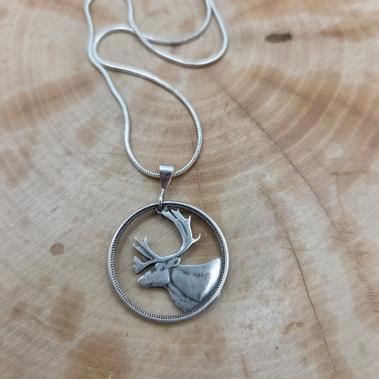 Canada Caribou 25 Cents Hand Cut Coin Necklace