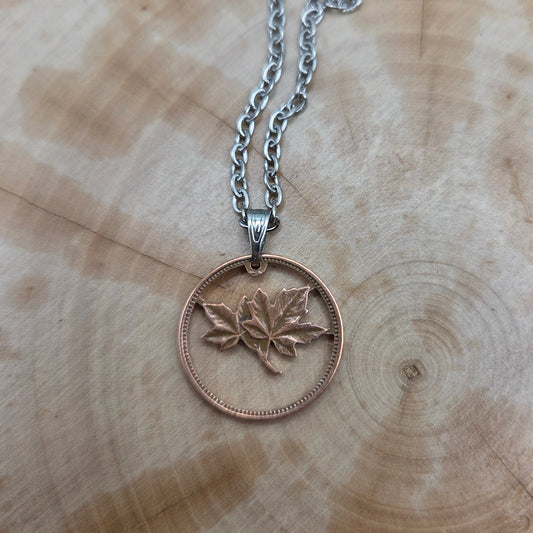Canada Maple Leaf Penny Hand Cut Coin Necklace