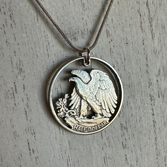 U.S. Walking Liberty Hand Cut Silver Coin Necklace (Eagle)