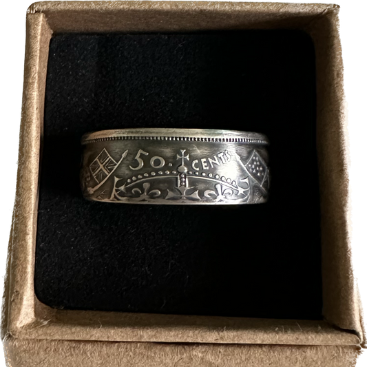 Canada 50 Cents Silver Coin Ring (Lion + Unicorn)
