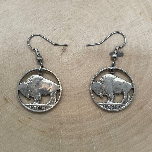 U.S. Buffalo Nickel Hand Cut Coin Earrings (Back)