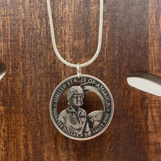 U.S. First American Woman in Space Hand Cut Coin Necklace
