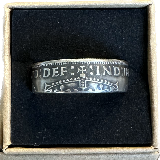 UK Two Shillings Silver Coin Ring